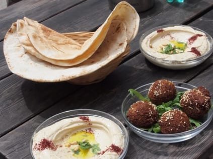 S pusou od cukru se tedy opřeme do pedálů a vyrážíme vstříc prvnímu podniku. Malému bistru Habba Habba, které by našinec pojmenoval po domácku Ham Ham. Nečeká na nás však žádná těžká gastronomie z doby, kdy roli hrála hlavně výživová hodnota a množství, nýbrž lehký středomořský hummus s křehkým falafelem. Vše rychlé, čerstvé, přírodní. I toto je totiž typická berlínská kuchyně.