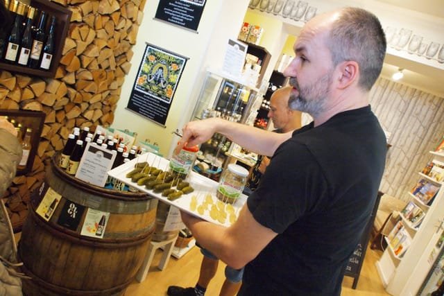Od sladkokyselých zálivek ale ještě neodcházíme. Čeká na nás totiž prohlídka Brandenburgerie, místního obchodu s regionálními delikatesami. Tady by si člověk užil celou škálu produktů: od sýrů, ryb, mas a uzenin, přes pečivo, nejrůznější pochutiny, až po pálenky či lokální gin. My jsme sem ale přišli ochutnat nakládané okurky.