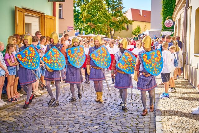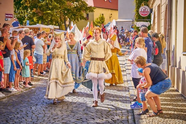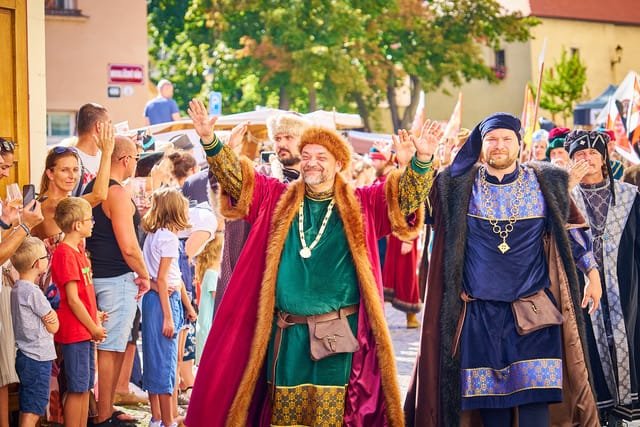 „At žije král a královna!“ – ozývaly se tak bouřlivé ovace v ulicích města v pátek večer a v sobotu začátkem odpoledne během tradičního a skutečně velkolepého průvodu krále Jana Lucemburského. „Myslím, že jestli je v našem programu něco jedinečné, tak je to právě historický průvod. Nejen pro návštěvníky, ale i pro nás produkci festivalu je to část programu, kdy se chvílemi až tají dech. Do města vyrazilo na 500 účinkujících a desítky zvířat. Poprvé vedle Mirka Hraběte, představitele krále, usedla na trůn Marta Dancingerová a ano, je to královna,“ hodnotí Koudela, který zároveň neopomněl poděkovat všem účinkujícím a režisérskému týmu pod vedením Šárky Charvátové. Právě ji v roli královny Dancingerová vystřídala.