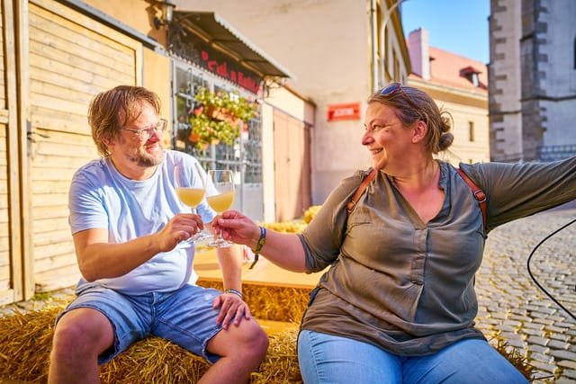 Zatímco návštěvy mázhauzů prakticky bez výjimky potěšily a vinaři nalévali pěkná, odrůdově čistá a příjemně pitelná vína většinou z posledních dvou ročníků, stejně tak burčák neměl až na jednu drobnou výjimku chybu, z gastronomické nabídky jsme byli trochu zklamáni. Hlavně u většiny gastrostánků na náměstích.