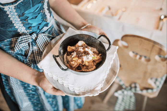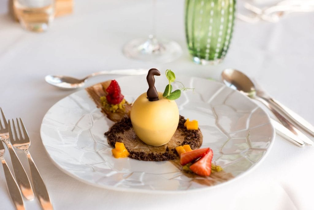 Jako předkrm můžete zvolit jihotyrolské zapečené bramborové placky s kysaným zelím, ječné rizoto s krémem z červené řepy a jihotyrolským šedým sýrem, anebo domácí tagliatelle s jelením ragú a tymiánem. Hlavní chody prezentuje filet ze sivena pošírovaný v čaji z alpských bylinek, dušená řepa a petrželková majonéza. Druhým a neméně lahodným je selská jehněčí pečeně v jihotyrolském stylu. Také dezerty vypadají velmi rozmanitě: buchtičky s vanilkovým krémem, jihotyrolské jablko či krupicové knedlíky s pohankovou zmrzlinou.