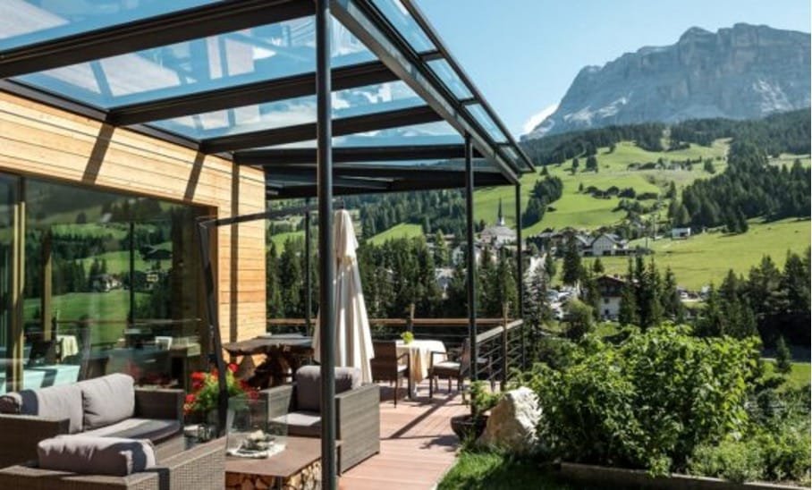 Výhled z restaurace Stüa dla Lâ hotelu Gran Arden v Alta Badii