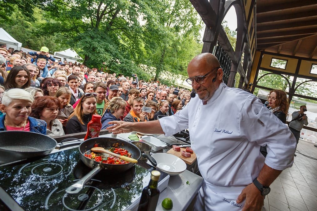 V neděli už bude hlavní pódium na náměstí patřit výhradně gastronomii. Kromě vystoupení Zdeňka Pohlreicha se návštěvníci mohou těšit například na šéfkuchaře vyhlášené restaurace Terasa U Zlaté studně Pavla Sapíka, vítěze kulinářské show MasterChef z roku 2016 Jiřího Halamku nebo kuchaře z ostravského Food Ateliéru. Programem provede herečka, spisovatelka a zapálená kuchařka Markéta Hrubešová.
