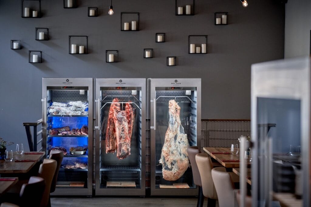 Jak už název napovídá, sem se chodí na steaky. Hovězí maso pochází výhradně z domácích chovů. Adam pečlivě vybírá jednotlivé kusy a staří je podle druhu masa 2 týdny až 3 měsíce přímo v restauraci, kde prosklené lednice ladí s jednoduchým dřevěným interiérem. V jedné zraje maso mokrou cestou, kdy se jednotlivé porce zavakuují a nechají se pozvolna vyzrávat ve vlastní šťávě 2–3 týdny. V dalších dvou lednicích jsou pověšené a položené větší kusy, které zrají suchou cestou. „Maso pomalu vysychá, voda se odpařuje a tuk se rovnoměrně rozkládá do svaloviny. Tzv. suché zrání trvá nejméně 1,5 měsíce,“ popisuje Adam Slezák. Délka záleží na druhu a velikosti masa.