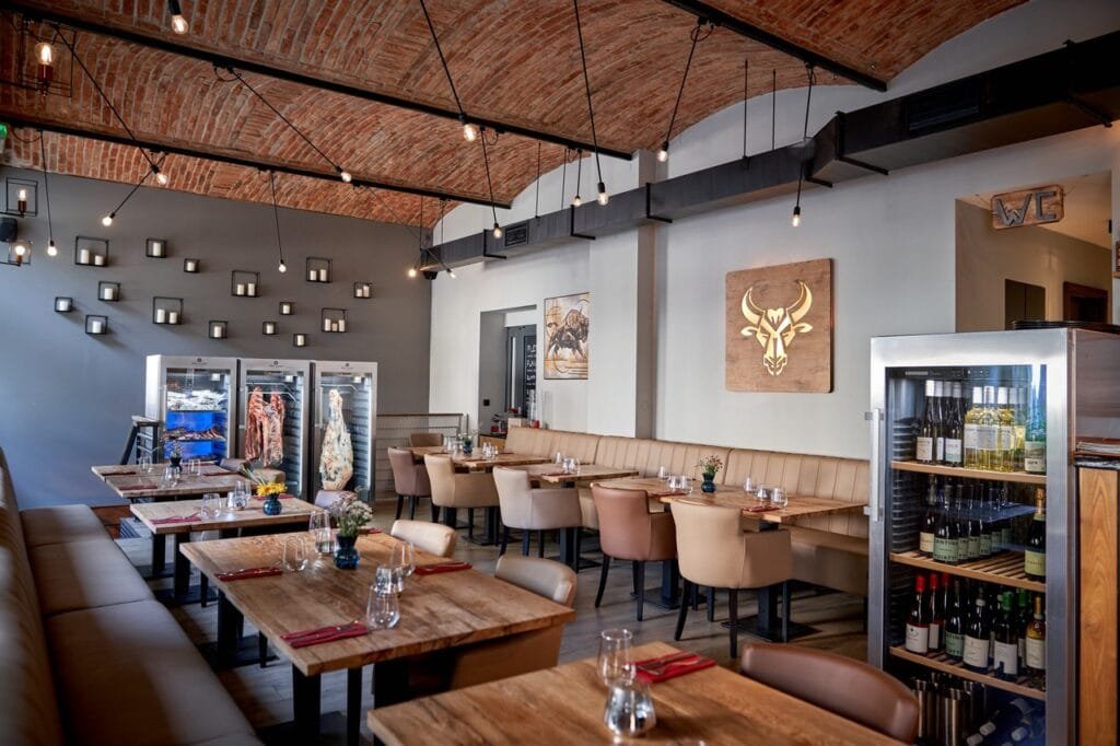 Správně připravit takové maso k jídlu už chce zkušenost a dobré vybavení. Jinak se zážitek z kvalitní suroviny rychle rozplyne. Doma to umí málokdo. Proto začal hledat v širším centru Prahy vhodné místo pro útulnou restauraci a dobrý gril, aby se práce se stařením mohla prezentovat co nejvíce zákazníkům. Prostory našel na Vinohradech blízko náměstí Míru. Restaurace Wood & Steak v Belgické 24 má 10 stolů, takže si vedle rodinné atmosféry zachovává i možnost individuálního přístupu k přání zákazníků. Nicméně zvládá i větší společnost, salonek pro třicet lidí je jen pár schodů pod restaurací.