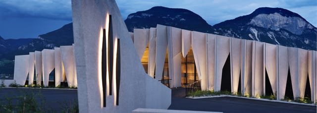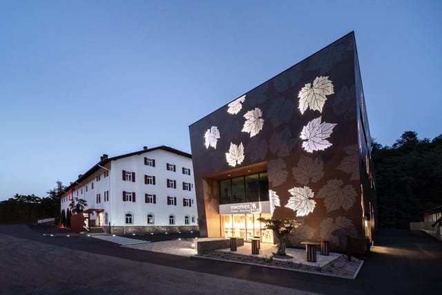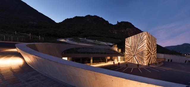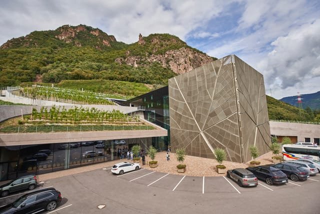 Futuristická stavba od renomovaného jihotyrolského architekta Wernera Tscholla připomíná barvou i tvarem okolní krajinu vinné révy. Zelená ocelová konstrukce se vine kolem spodní skleněné budovy. Nová boční křídla vítají návštěvníky jako dvě otevřené náruče.