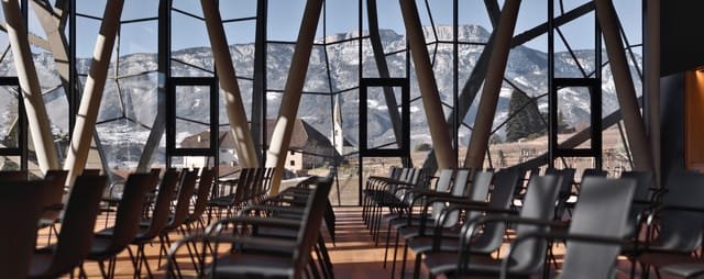 Architekt Werner Tscholl vytvořil dominantu, která zaujme nejen exteriérem, ale klíčovou roli v designu hraje také funkce: existují samostatné úrovně pro pracovní zázemí a návštěvnickou zónu.