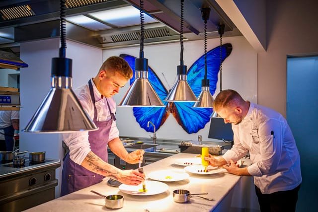 Symbolem nové éry se stala restaurace Papilio ve Vysokém Újezdu – historické zámecké stáje s vysokými klenbami proměněné v současný chrám kulinární kreativity. Šéfkuchař Jan Knedla tu v otevřené kuchyni skládá degustační menu až o deseti chodech, inspirované vzpomínkami na dětství a chutěmi, které formovaly jeho kuchařský svět. Jeho kuchyně je hravá, precizní a zároveň niterná. Právě tato kombinace mu letos přinesla první české michelinské dvouhvězdí v historii.
