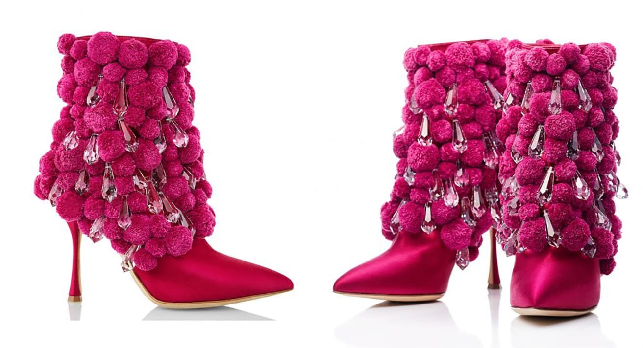 Růžové střevíce zdobí speciální lustrové ověsy, na každé botě je jich téměř padesát, což koresponduje s inspirací v českých tradicích a českém folklóru. Mimochodem málokdo ví, že Manolův otec byl Čech. Lesk křišťálu a hebké fuchsiové bambulky dodávají botám punc luxusu, což ostatně zvládá i samo Blahnikovo jméno. Jedinečné střevíčky měly premiéru pod lustrem Marie Terezie v pražském flagship storu Preciosy v Rytířské ulici, kde je hostům představila modelka Tereza Maxová. K vidění tu budou do poloviny listopadu. A pokud byste uvažovali o nákupu, pak cena vychází zhruba na 135 tisíc korun.