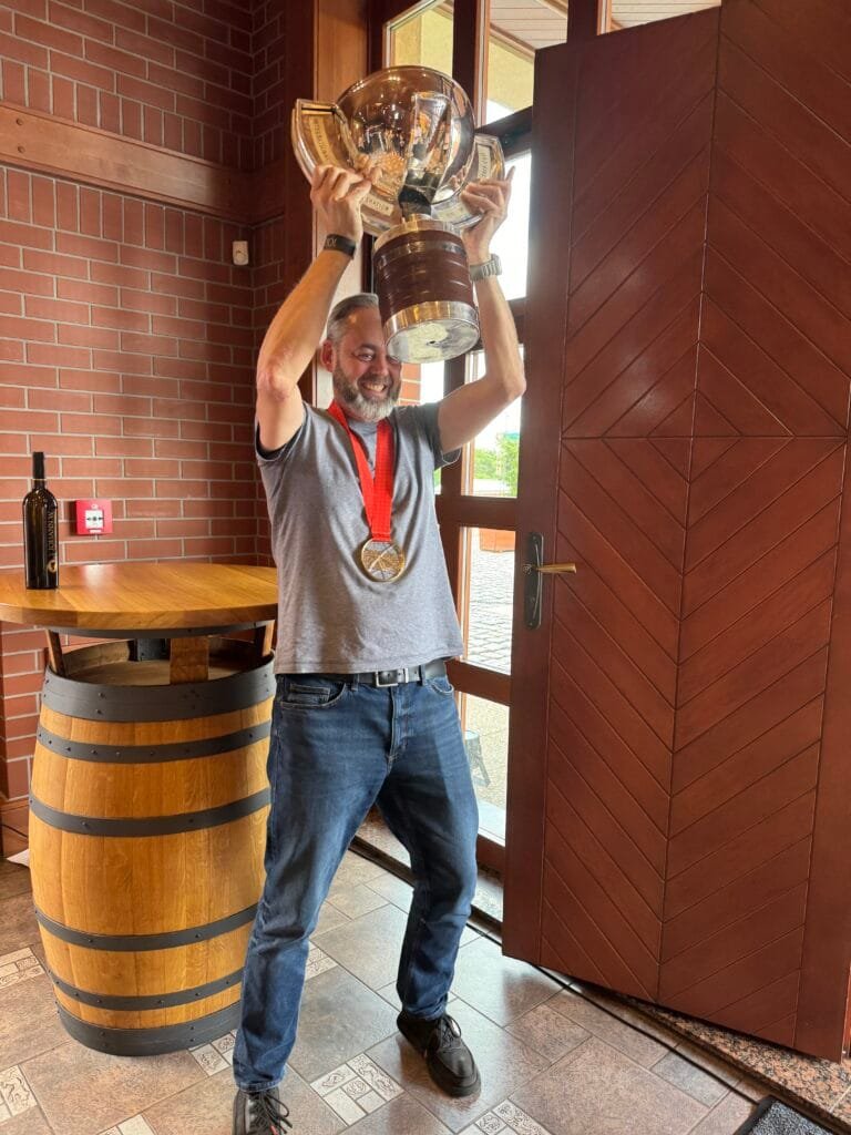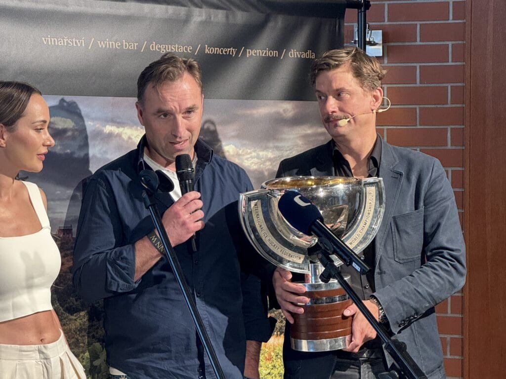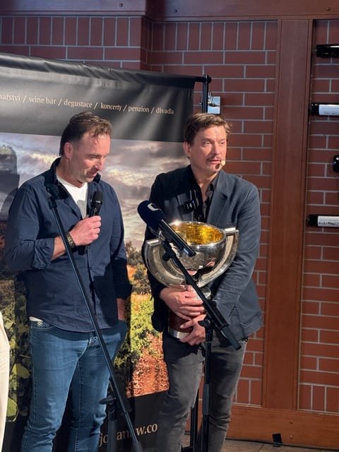 Jsem milovník vína. A moc rád sem jezdím, protože si tu užívám jak skvělé víno, tak i skvělou společnost. Takže jsem si tentokrát dovolil přivézt zase něco ze svého světa. Našemu týmu se v minulém týdnu podařila skvělá věc, která se hned tak někomu nepoštěstí. A tu radost bych tady chtěl s vámi sdílel. A proto jsem vzal s sebou přímo z opravny pohár mistrů světa a přivezl jsem i medaili,“ uvedl Hnilička, který tak potvrdil, že nejen spojení kultury a vína, ale i vína a sportu jde dobře dohromady.