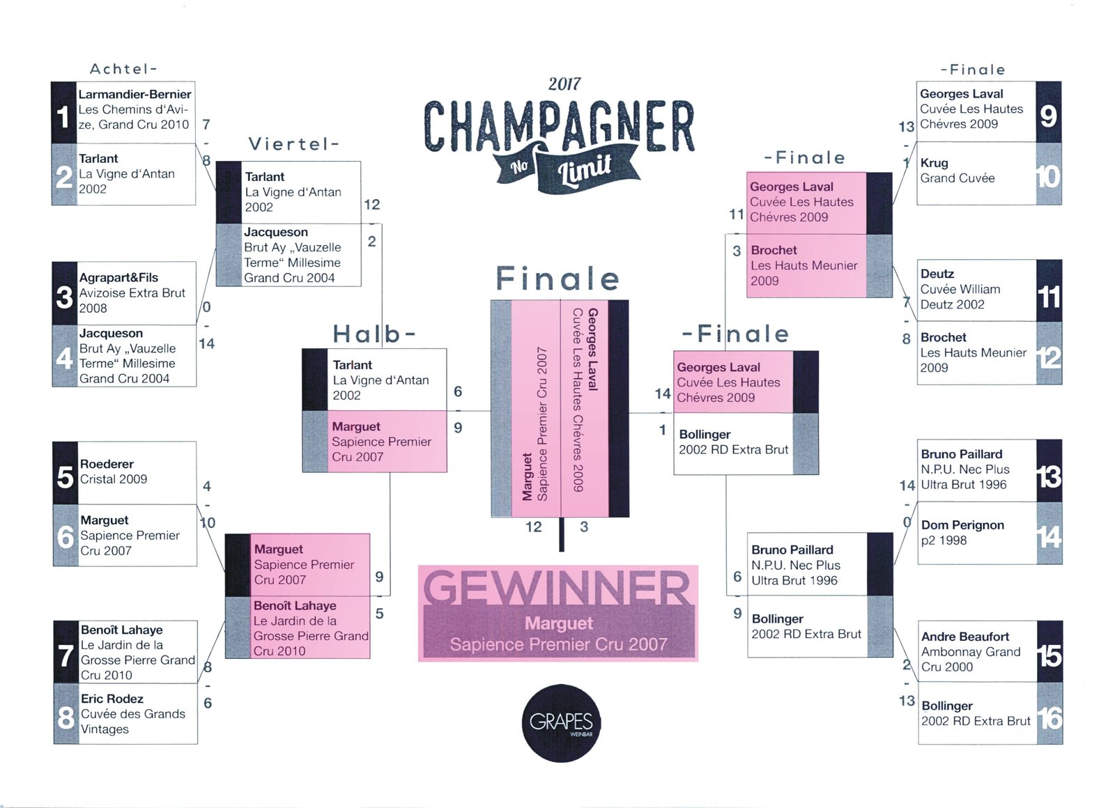 V květnu 2017 se v Mnichově konala slepá degustace Champagne s 16 top michelinskými sommeliéry, bloggery a specializovanými žurnalisty, kam každý přinesl podle svého mínění to nejlepší z BEST OF THE BEST CHAMPAGNE. Tyto vzorky byly pak slepě degustovány všemi zúčastněnými metodou losovaného play-off.