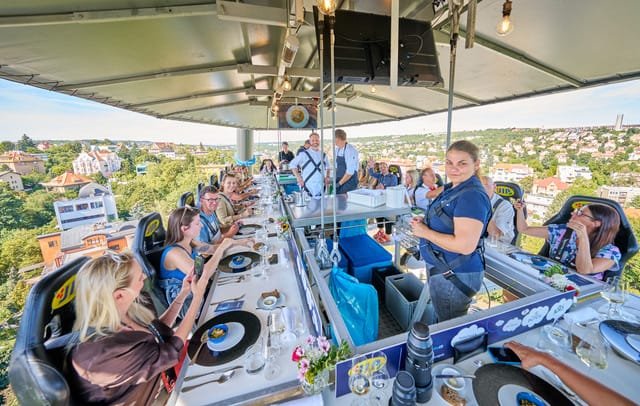 Oběd či večeře v oblacích se podávají pouze první dva prodloužené zářijové víkendy – od 4. do 7. září a od 12. do 14. září. Přijít můžete na tříchodový oběd, čtyřchodovou večeři či na večeři při západu slunce. Cena za menu včetně nápojů a uvítacího drinku začíná na 3 190 Kč za osobu. Rezervace je nutná, stejně jako výběr menu předem – masového či vegetariánského. Na webových stránkách dinnerinthesky.cz můžete zakoupit dárkové poukazy či si zarezervovat konkrétní termíny. Dinner in the Sky přispívá na Vánoční charitativní aukci DEJME DĚTEM ŠANCI, která podporuje děti z dětských domovů.