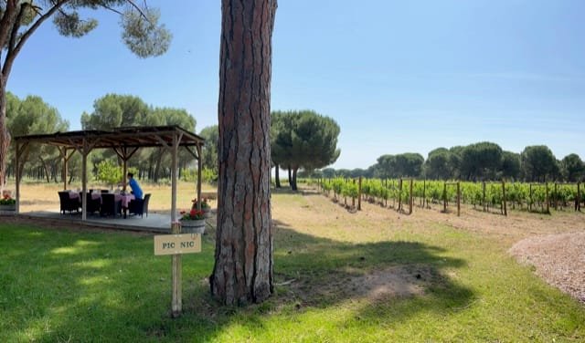 Je načase nasednout na elektrokola a na několika zastávkách si prohlédnout tuhle úrodnou nádheru. Na pozemcích pěstují Tempranillo, Merlot a Cabernet Sauvignon. Moudrá příroda sama nastavila hranice v podobě řeky, piniových lesů a slunných planin, které z každého vinohradu vytváří originální terroir s vlastním mikroklimatem. Nutno dodat, že zhruba 700 metrů nad mořem. Půda je zde hodně písčitá, ale podloží u jižních vinic přechází v oblázky a říční nánosy z řeky Duero. Naopak na severu dýcháte dřevem a jehličím provoněný vzduch jako v lese. Vinohrady Cabernet Sauvignon jsou vystaveny ostrému slunci na rovině obehnané hradbou piniových borovic, jež chrání rostliny před nápory větru.