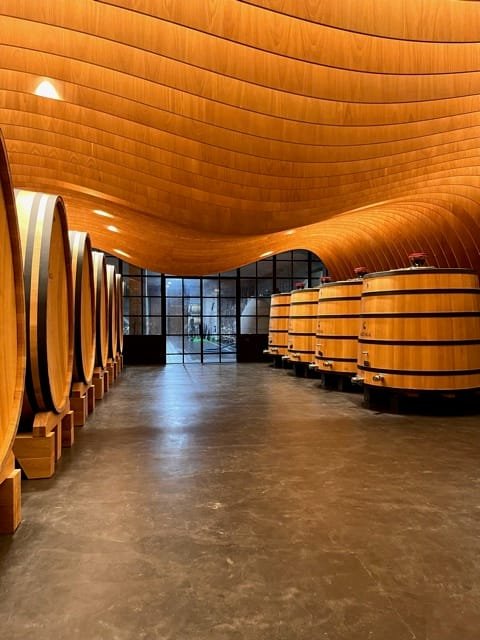 Nechybí ani wine-tour mezi sudy, ukázkami zrání v lahvi a betonovými tanky. Průvodkyně zhasíná a jemná melodie doprovází působivé promítání a prezentaci filozofie a péče o produkty vinařství. Vše žije a tančí na mohutných tělech betonových tanků. Nevšední show zaručena.