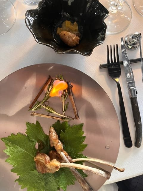 Nechyběl rybí pokrm v době mořského ďasa v omáčce z uzeného česneku a paprik s pomeranči, středomořské krevety s mladým hráškem, kančí jazyk s pastrami, kanice s piniovými oříšky a lanýži a jehněčí kotleta nebo ochutnávka jejich domácích chlebů (třeba s meruňkami a ořechy), másel (například máslo s shitake) a olivových olejů.