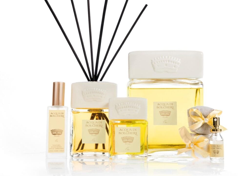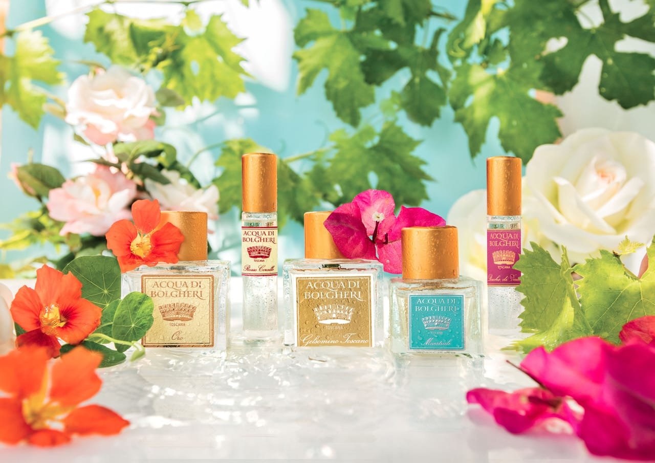 Tato harmonie mezi vinařstvím a přírodou se promítá i do kosmetické řady Acqua di Bolgheri, která čerpá inspiraci z krajiny, vůní a elegance poklidného toskánského venkova. Jemné tóny růží, levandule, vinné révy, fíků či citrusů evokují atmosféru procházky vinicemi za letního podvečera. Cypřiše, zralé hrozny, jasmín vonící do letní noci, moře, květiny…, to vše se odráží v parfémech a difuzérech značky Acqua di Bolgheri.